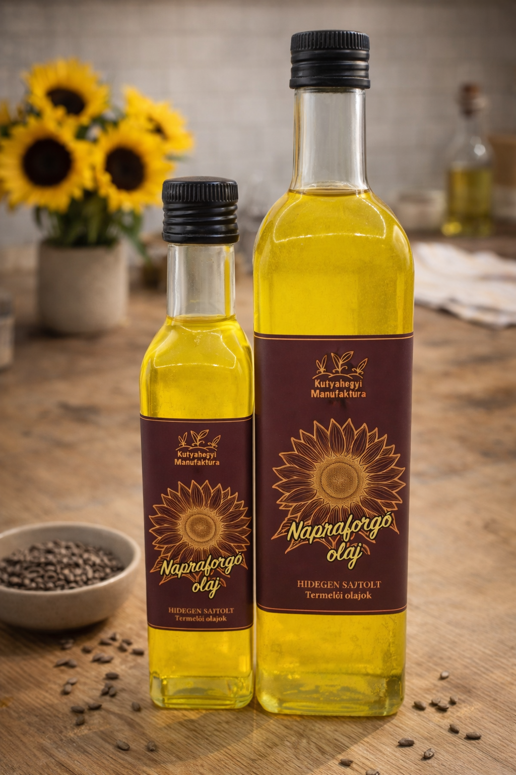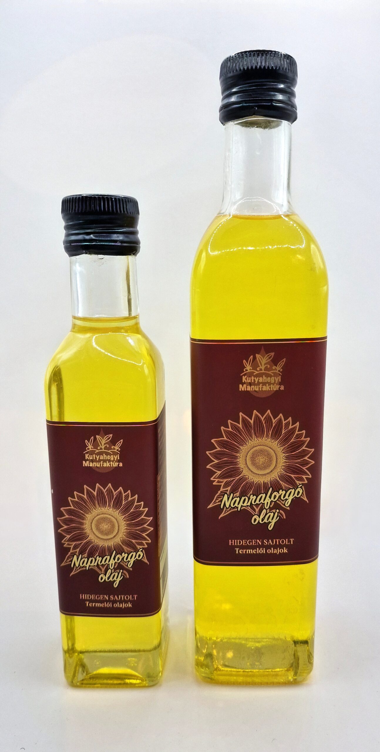 100% tisztaságú hidegen sajtolt napraforgó olaj.