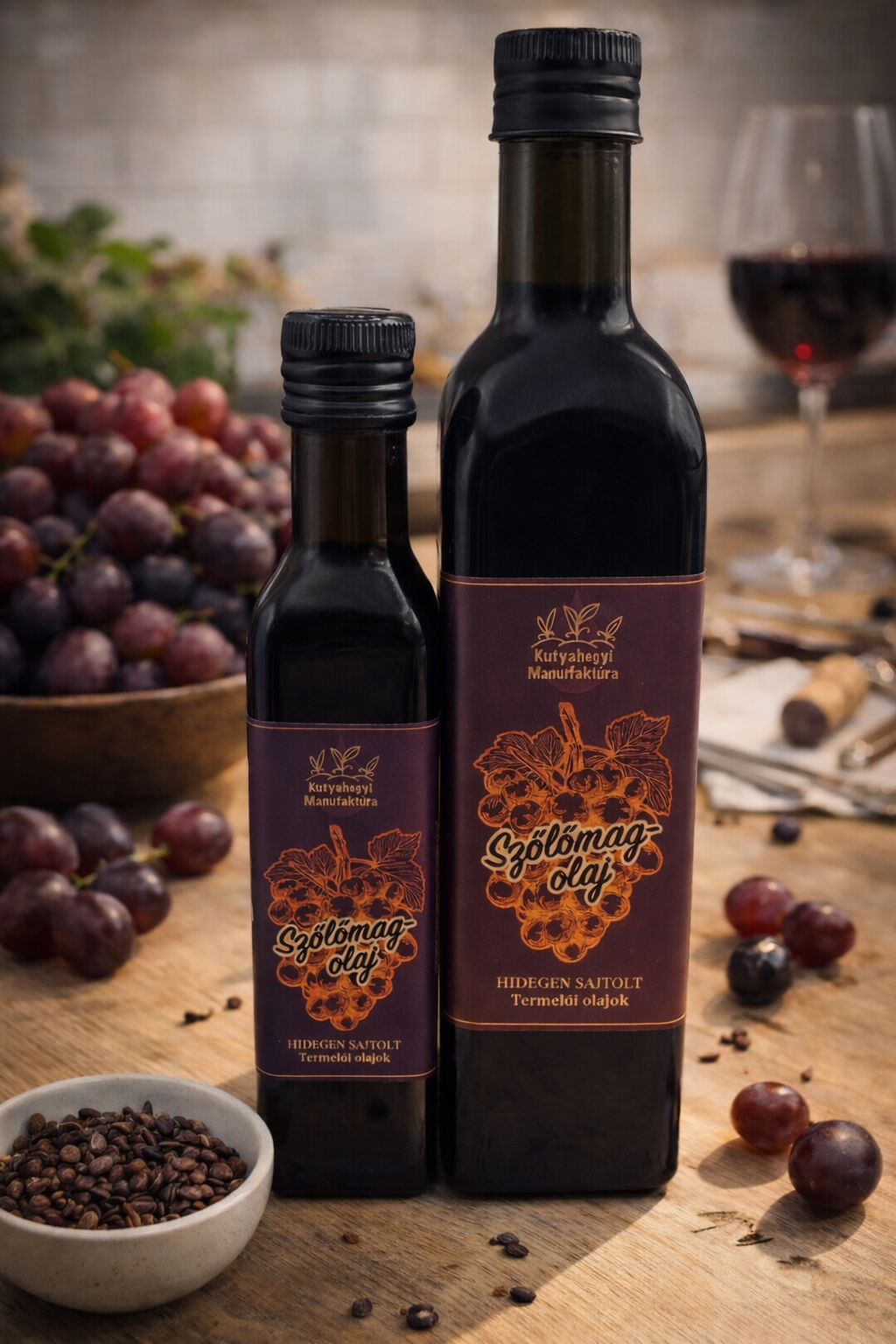 Hidegen sajtolt, szűretlen szőlőmagolaj alján ülepedés keletkezhet, amely természetes folyamat következménye. Használat előtt felrázandó!